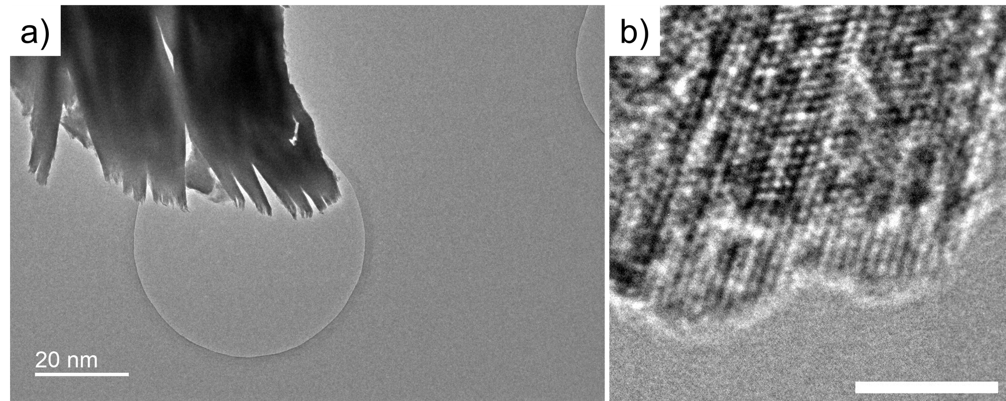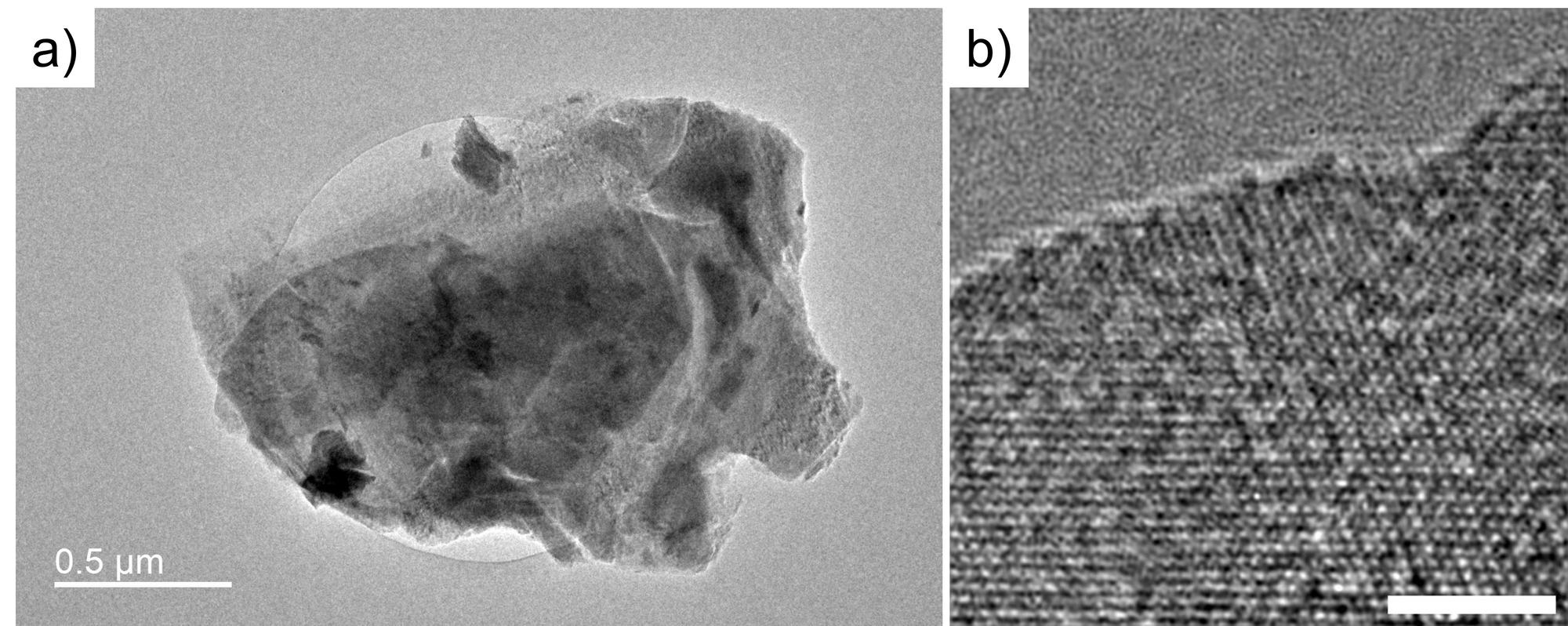 Starting from the MXene project, I used TEM to examine MXene at the atomic scale. Figure 1a shows the TEM image of the MXene I synthesized and exfoliated. It can be observed that it is a multilayer MXene, only a portion of the area is thin enough for TEM. Figure 1b shows the HRTEM image of MXene, it shows the lattice of the MXene at (001) direction.