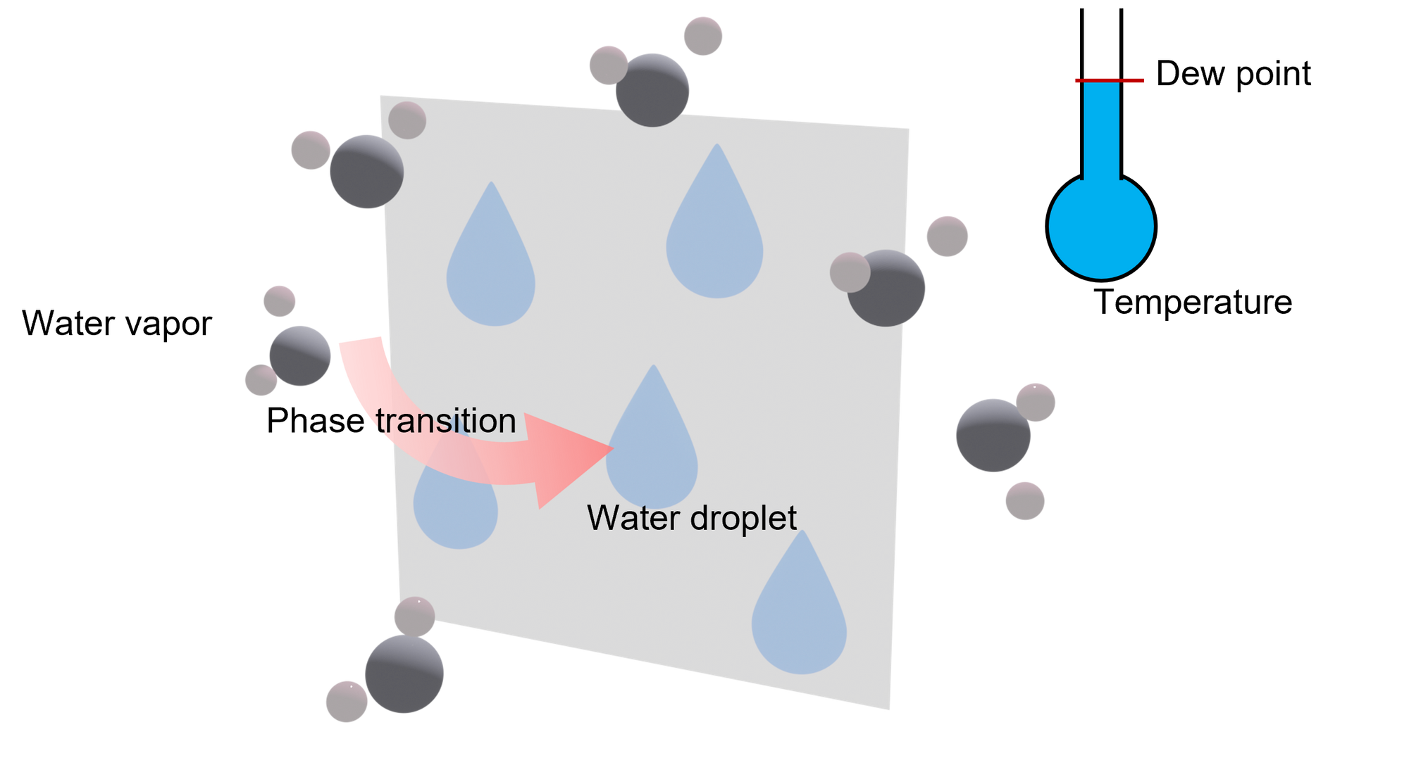When the water vapor dropped to the temperature below the dew point, condensation happened (Figure 2). If the foreign substrate was involved in the condensation, we call it heterogeneous condensation, otherwise, we call it homogeneous condensation. Heterogenous condensation is more favorable than homogeneous condensation in terms of thermodynamics. Therefore, the common practice in Dew harvesting is to provide a foreign substrate for condensation to take place. My project started by syntheisizing different materials to participate in the condensation.